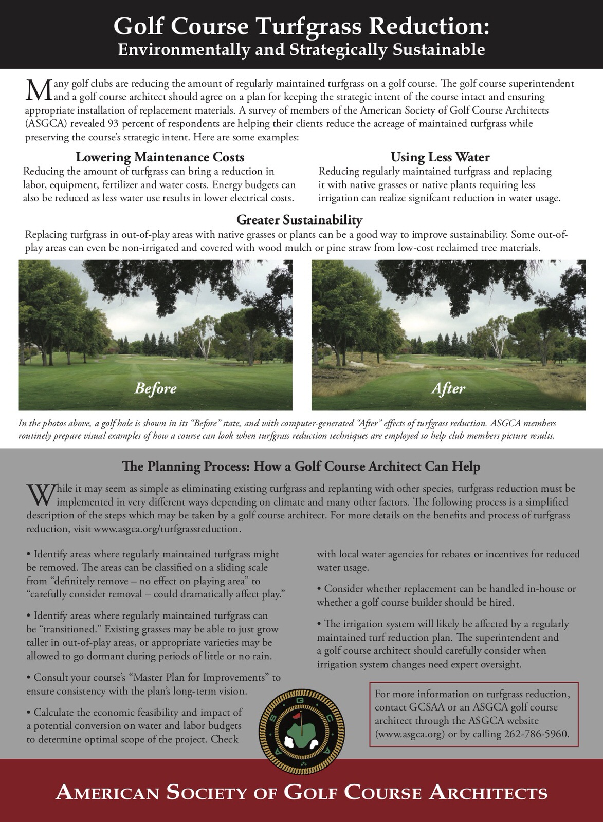 RHGD consults with industry experts such as Dr. Stuart Cohen, Dr. Norm Hummel, Dr. Joe Vargas, and Dr. Lee Berendt to name a few, as well as agronomists from the USGA’s Green Section. We work closely with golf course superintendents in creatively adjusting grass lines to enhance each hole’s strategy, shot value, and playability while lowering the carbon footprint for irrigation, mowing, pesticide, and fertilizer use. With regards to the clubhouse and maintenance buildings, we partner with industry experts that are LEED certified in clubhouse architecture, irrigation design, and engineering.